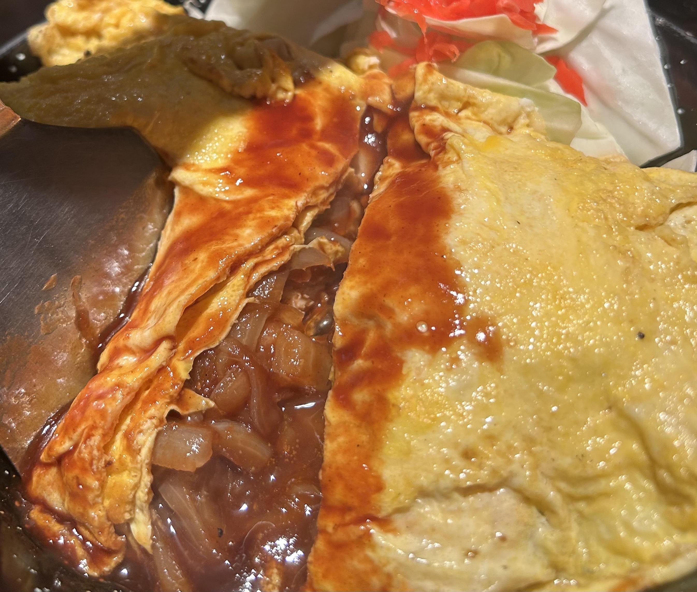 ドライカレーそば飯を玉子で巻いてみました。